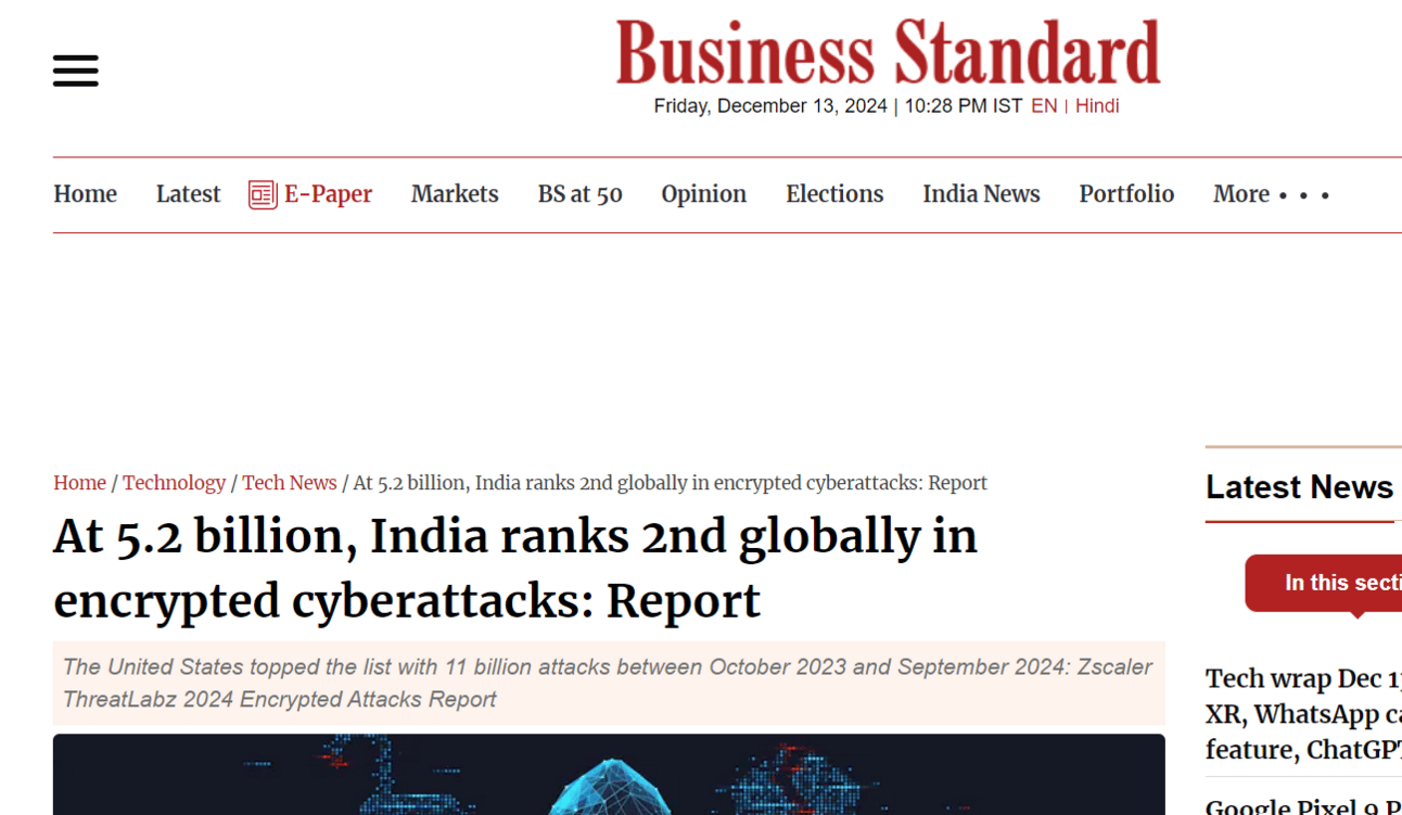 At 5.2 billion, India ranks 2nd globally in encrypted cyberattacks: Report. The Indian government has allocated of Rs 759 crore for the 2024-2025 fiscal year