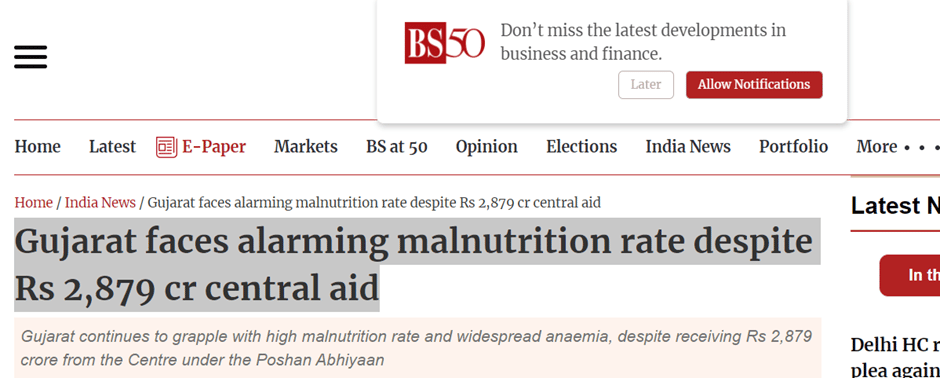Gujarat faces alarming malnutrition rate despite Rs 2,879 cr central aid