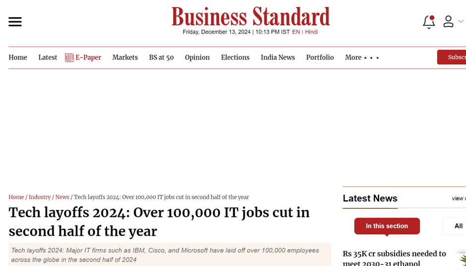 In 2024, India has seen significant layoffs primarily concentrated in the tech sector, with major companies like Intel, Cisco, Microsoft,etc cutting thousands of jobs, resulting in over 100,000 IT jobs lost across the country, particularly in the second half of the year; this trend is attributed to economic challenges and company restructuring initiatives.