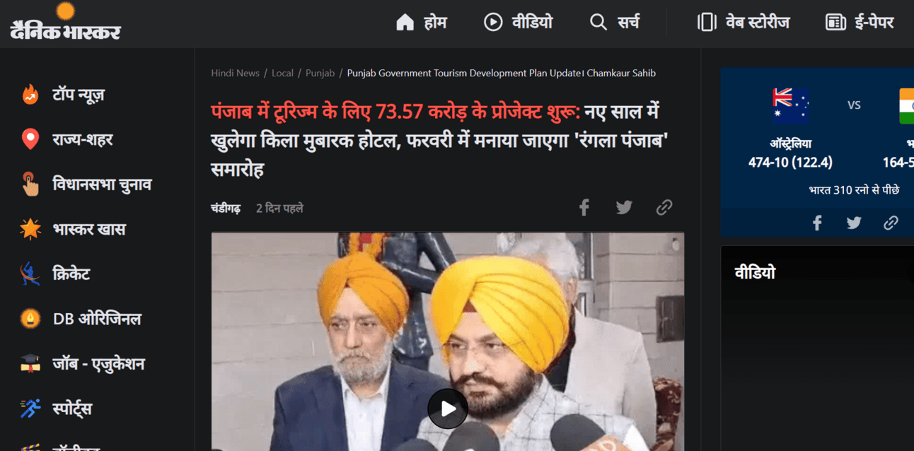 पंजाब में टूरिज्म के लिए 73.57 करोड़ के प्रोजेक्ट शुरू:नए साल में खुलेगा किला मुबारक होटल, फरवरी में मनाया जाएगा 'रंगला पंजाब' समारोह