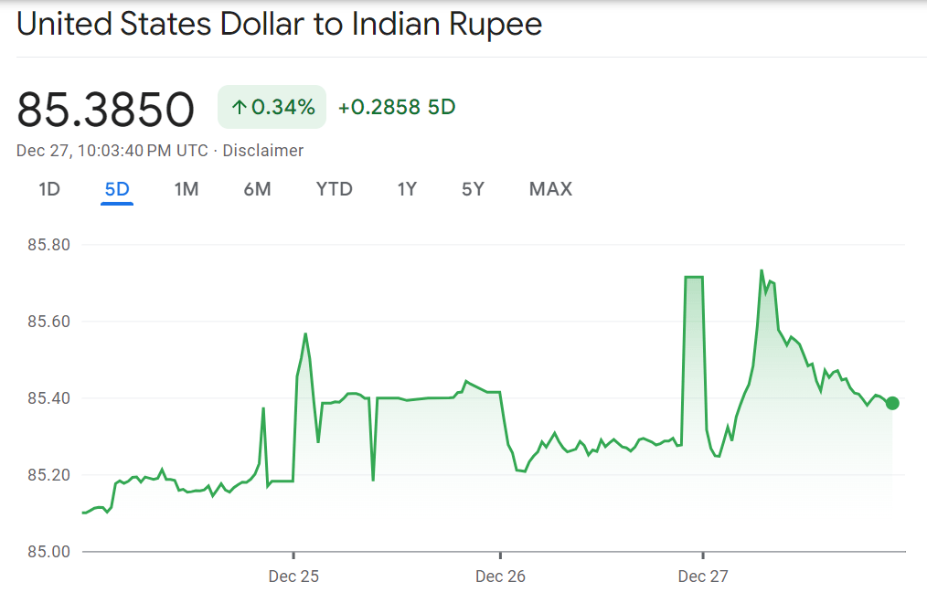 Rupee fall to its lowest ever at Rs 85.7 this week.
