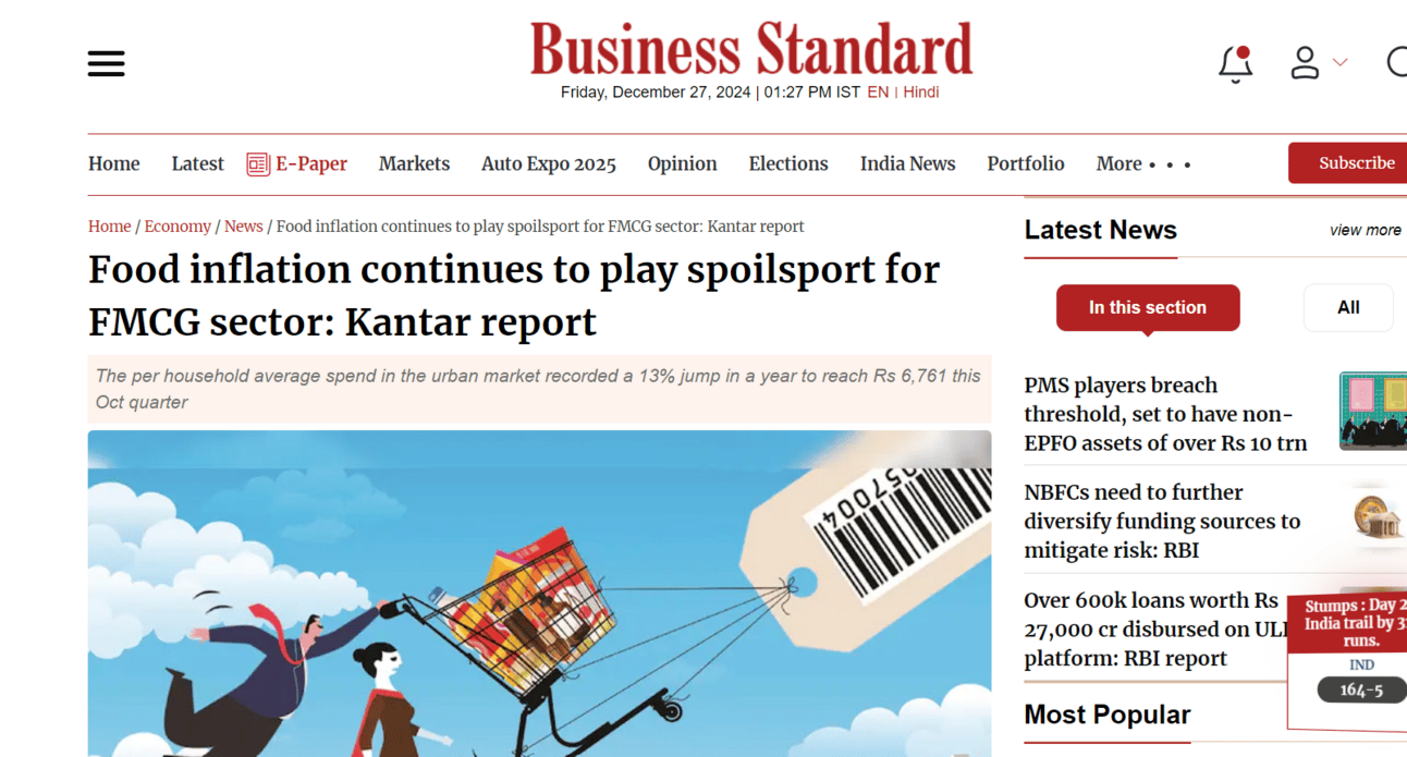 The fast-moving consumer goods (FMCG) sector has witnessed a significant slowdown due to rising inflation. The August-October (ASO) quarter reported growth of just 4.3 per cent, compared to 6.4 per cent in the same quarter last year.