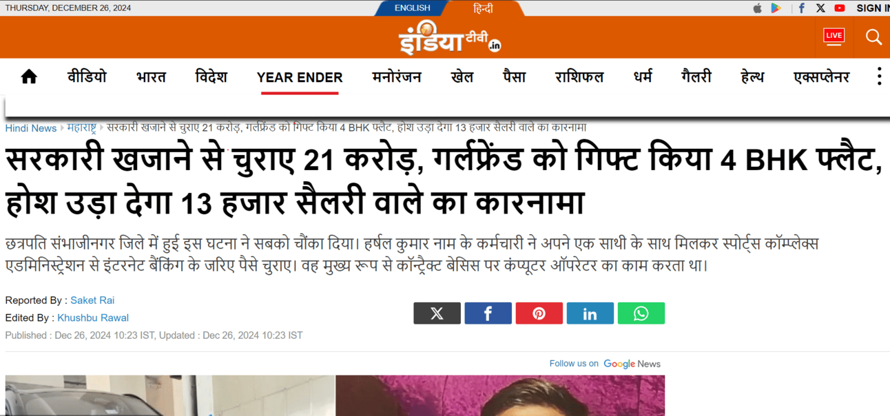 21 crores stolen from the government treasury, gifted to girlfriends 4 BHK flat.