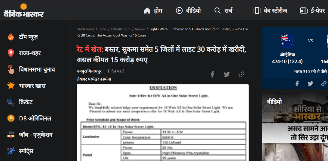 बस्तर, सुकमा समेत 5 जिलों में लाइट 30 करोड़ में खरीदीं, असल कीमत 15 करोड़ रुपए