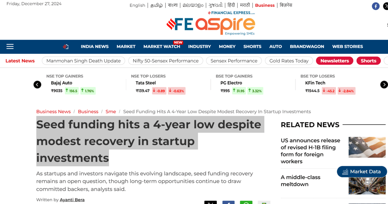 Seed funding hits a 4-year low despite modest recovery in startup investments