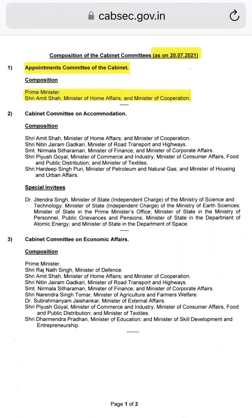 **** PM Narendra Modi and HM Amit Shah constitute the two member, all powerful, Appointments Committee of the Cabinet (ACC). The composition of ACC has been like this since 2019.