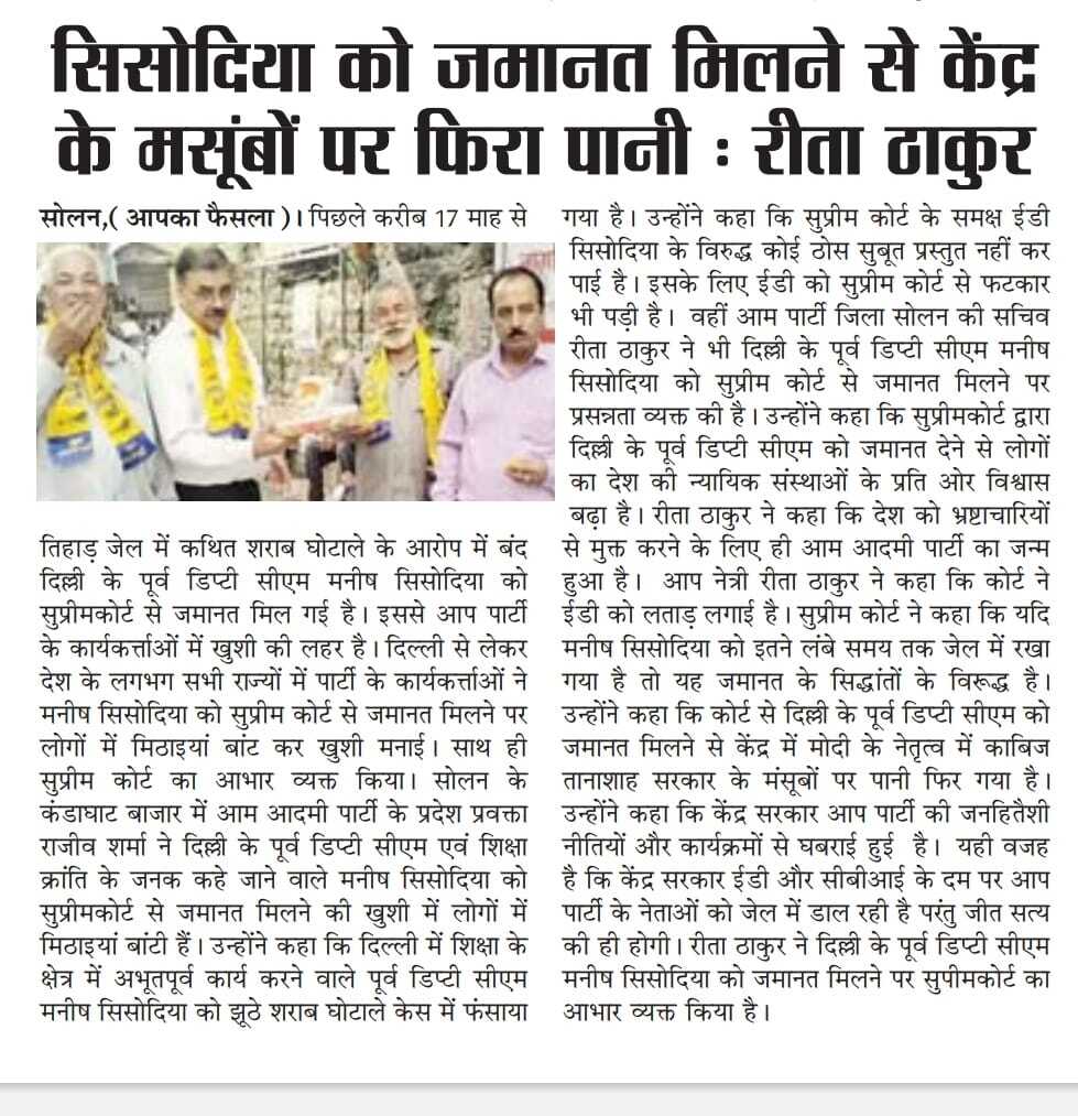 @msisodia He said that he's happy that Manish has been granted bail and is of belief that none of the AAP Leaders who are arrested are personally corrupt AAP has good work in Delhi