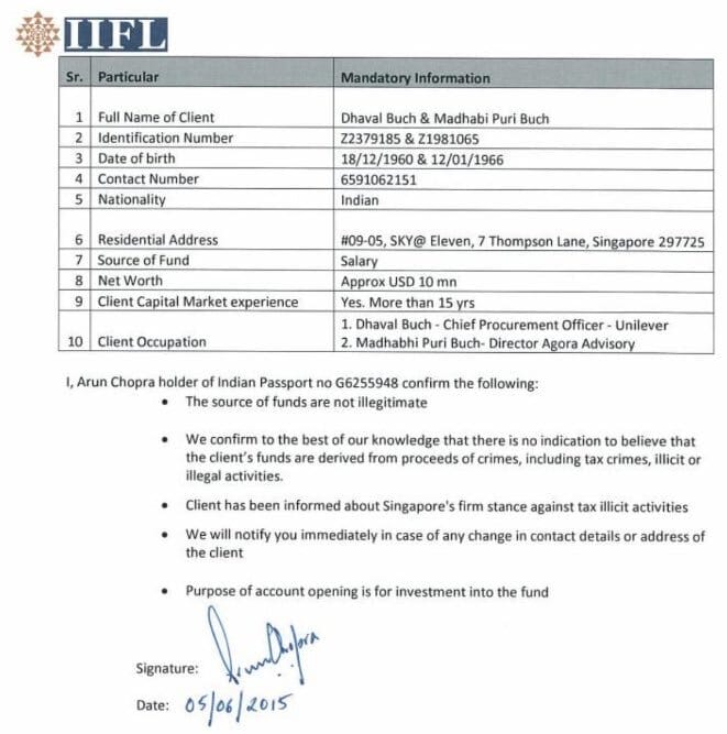 In 2017, before Buch was appointed as a whole-time member, the second-highest ranking office at Securities and Exchange Board of India (SEBI), her husband requested to be the sole operator of the account, Hindenburg said, citing whistleblower documents.