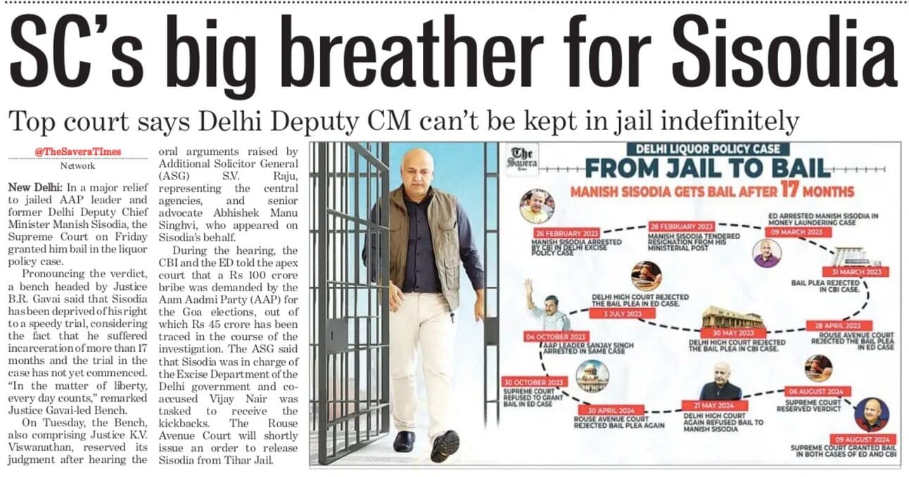 The judges added that since Mr Sisodia's trial was unlikely to be completed soon, it would be a violation of his rights to keep him imprisoned indefinitely.