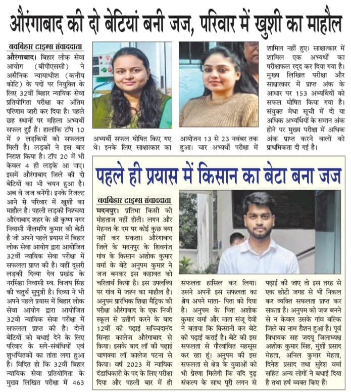 औरंगाबाद के दो गो बिटिया जज बन गईली।