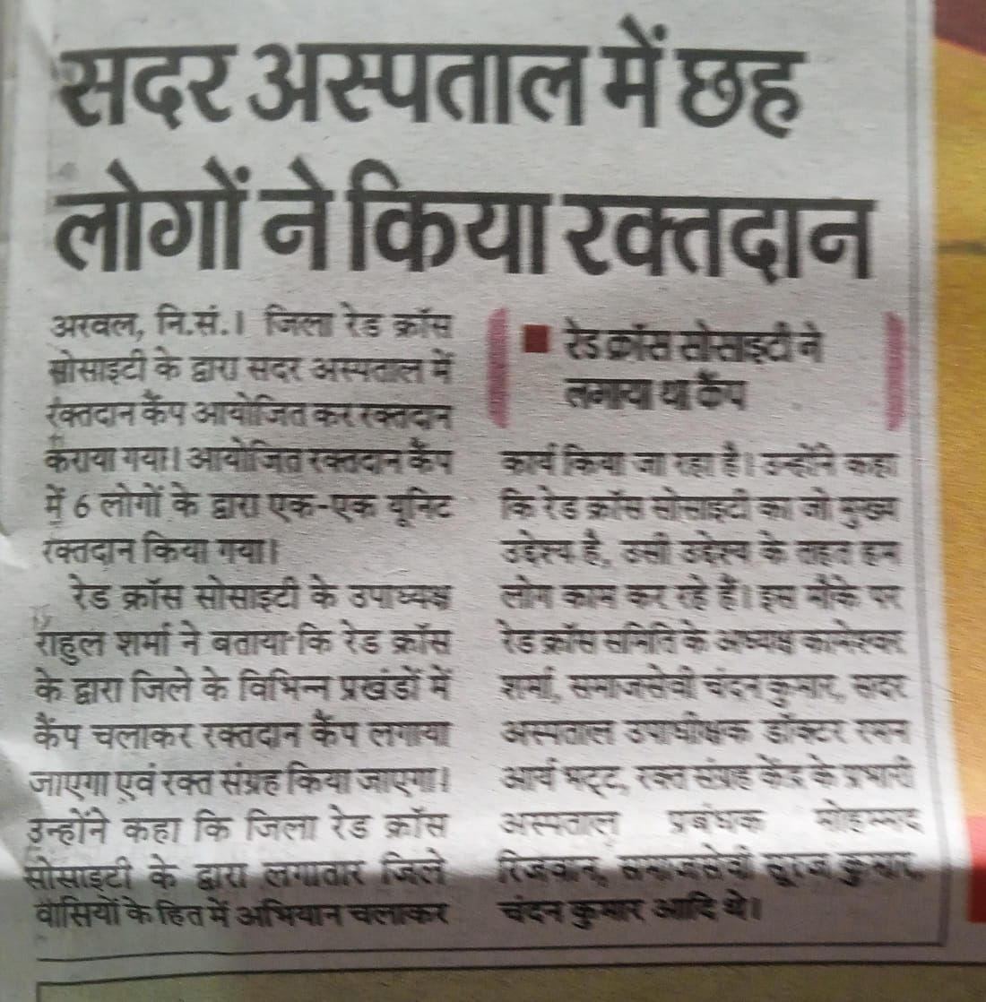अरवल सदर अस्पताल में 6 लोगों ने किया रक्तदान