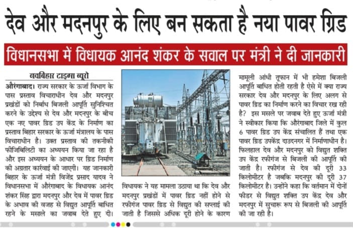 देव आ मदनपुर क्षेत्र में बिजली के समस्या दूर करे खातिर विधायक आनंद शंकर सिंह नया पाॅवरग्रिड बनावे के माँग कईले।