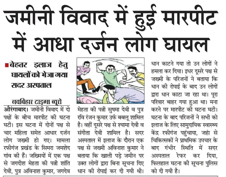रफीगंज प्रखंड के सिमरा जमशेद गाँव में जमीनी विवाद में चार महिला समेत आधा दर्जन लोग घायल हो गईलन।