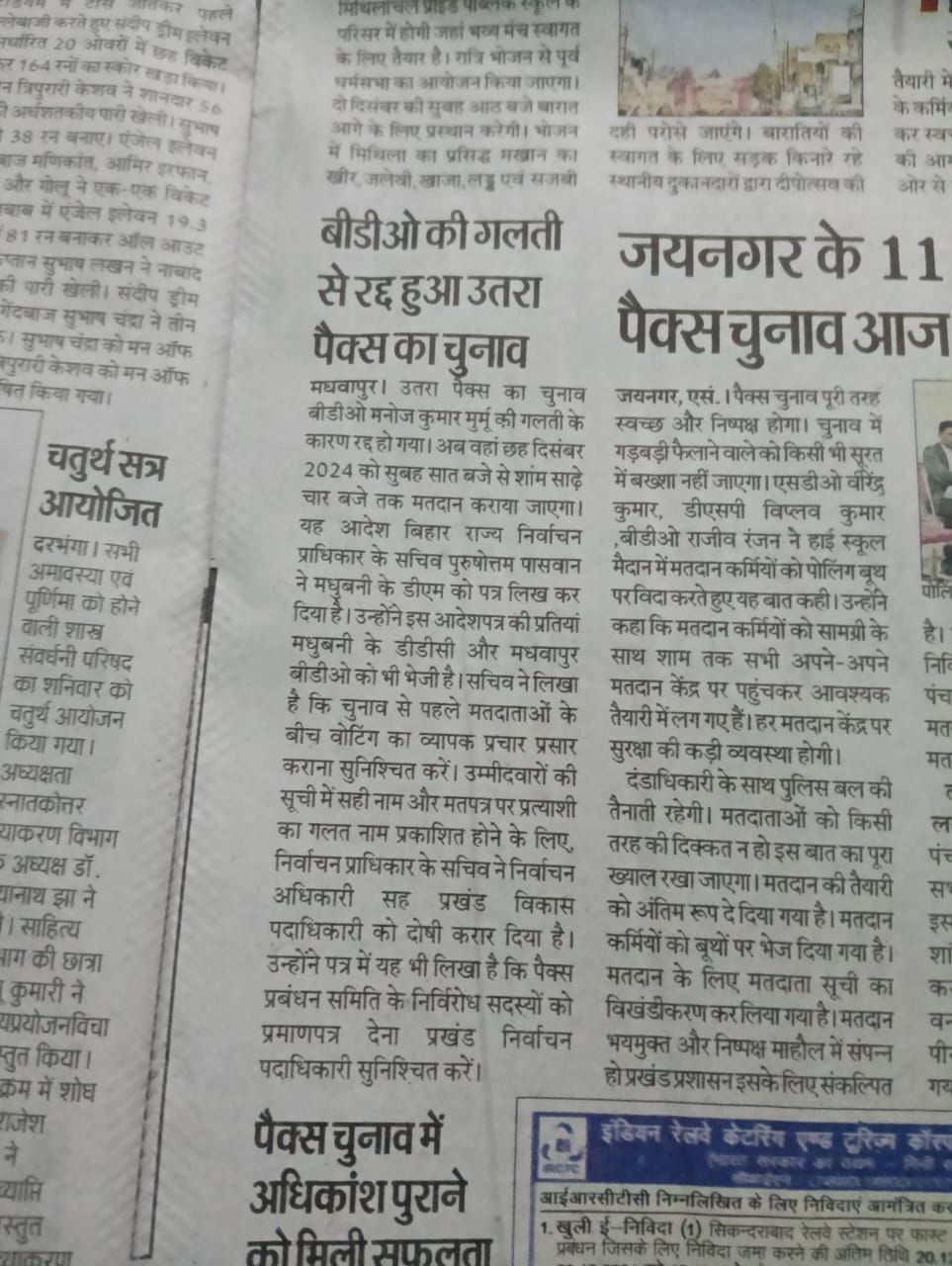 बीडीओ की गलती से रद्द हुआ उतरा पैक्स का चुनाव