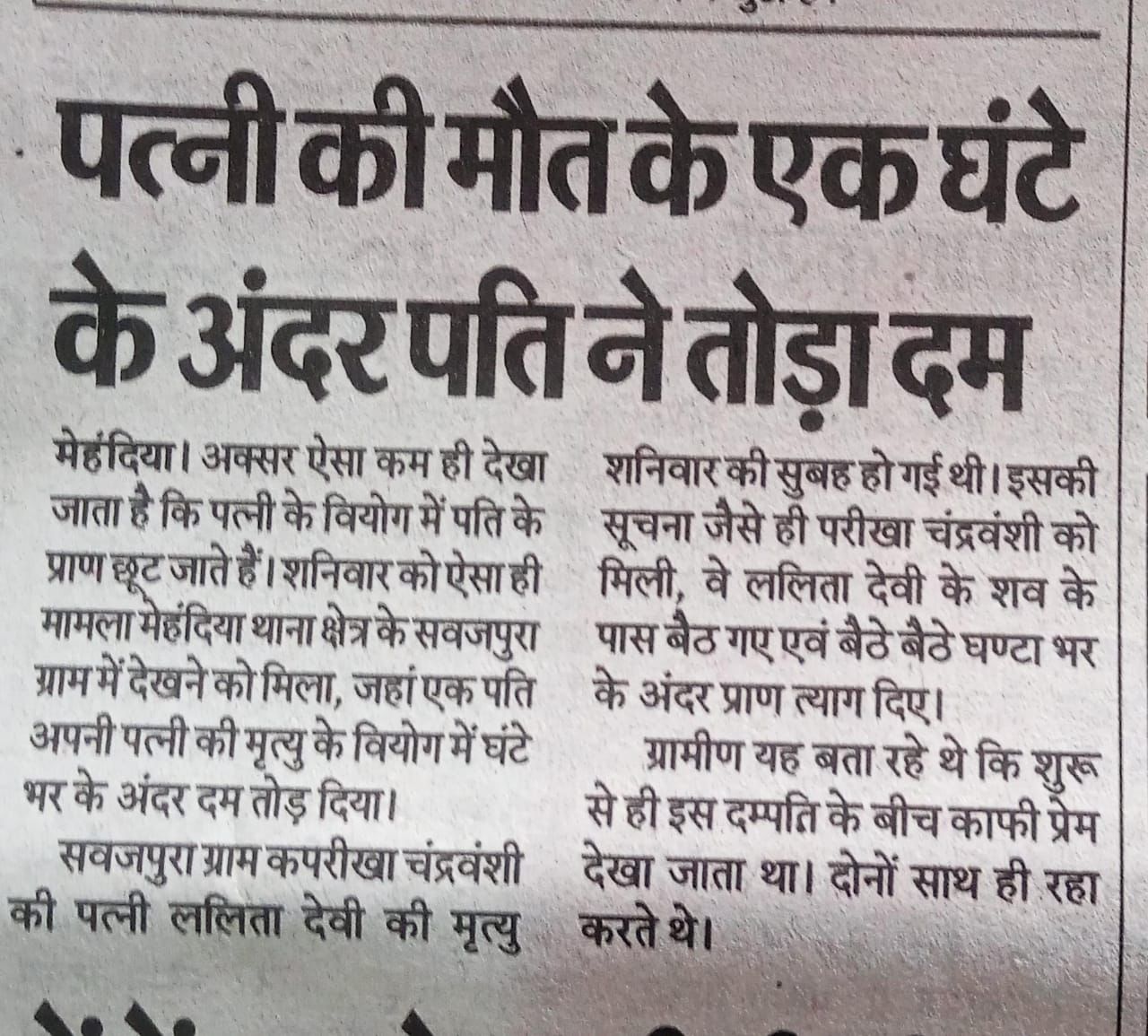 एमडी राजा अरवल न्यूजपत्नी की मौत के 1 घंटे के अंदर पति ने थोड़ा दम