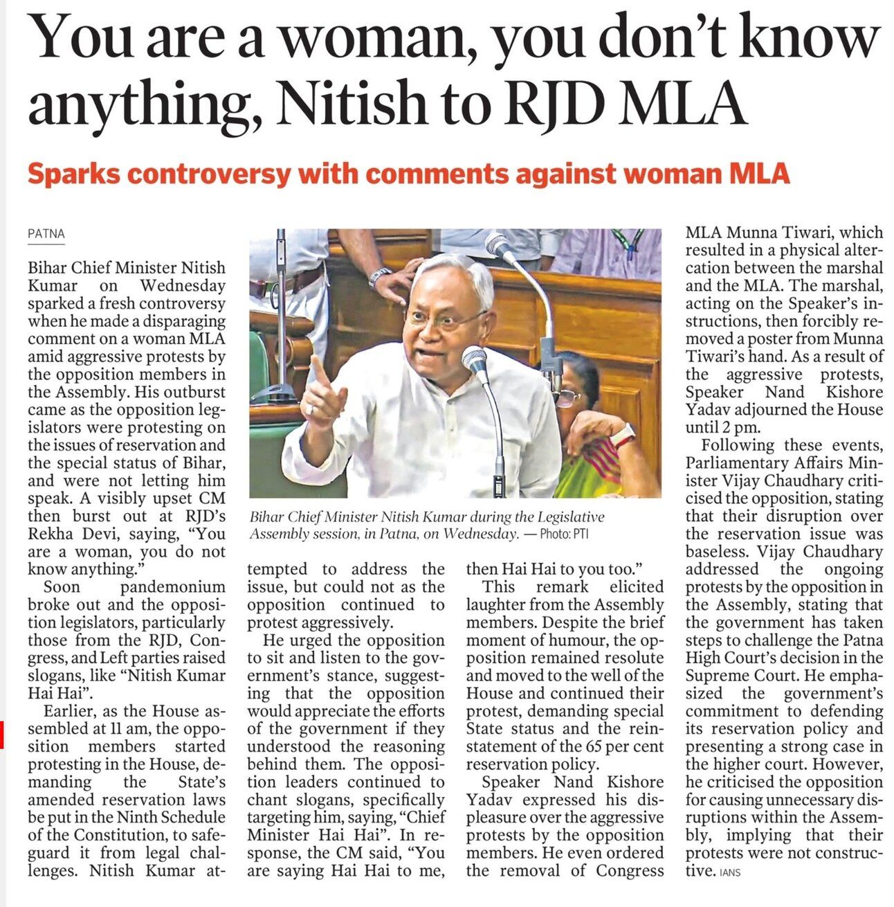 "You are a woman, you don't know anything": Nitish to RJD MLA He equals the BJP standards, indeed!