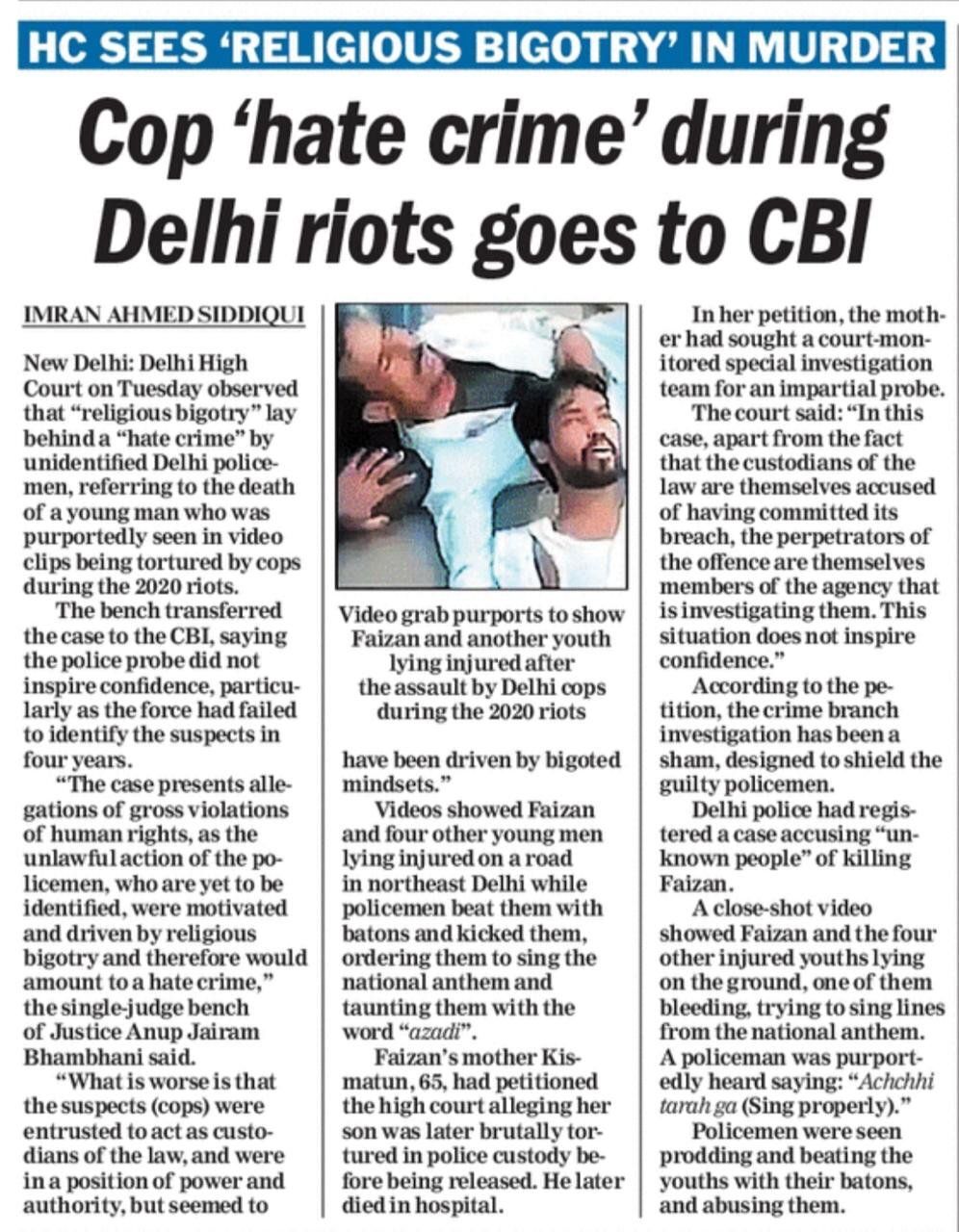 Muslim Youth were tortured and killed by Delhi Police while recording a video to spread fear. After 4 years, High Court has sent the case to CBI. Both Delhi Police & CBI take instructions from Amit Shah. India is a Lawless Country.