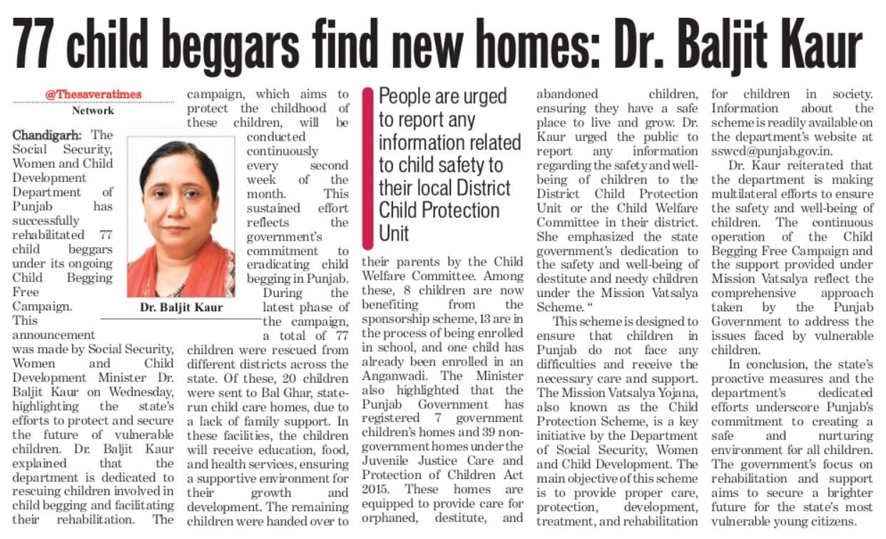 Punjab: 77 child beggars find new homes — people are urged to report any information related to child safety to their local District Child Protection Unit