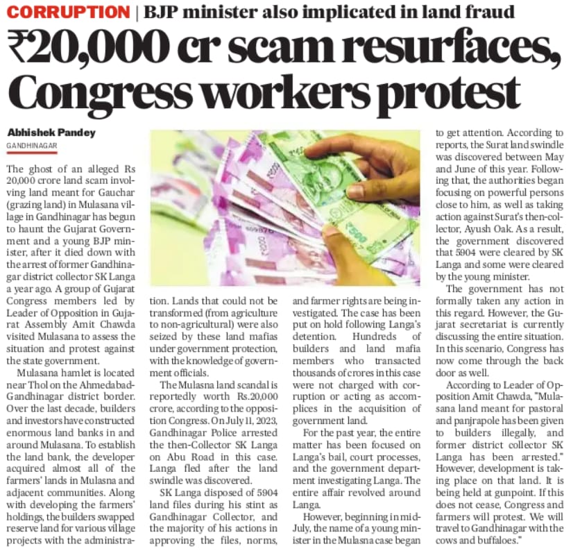 The ghost of an alleged ₹20,000 crore land scam involving land meant for Gauchar (grazing land) in Gandhinagar haunts the Gujarat govt and a young BJP minister