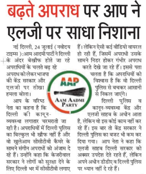 AAP launches a scathing attack on BJP's central government and LG over the rising crime rate in Delhi due to criminals becoming fearles