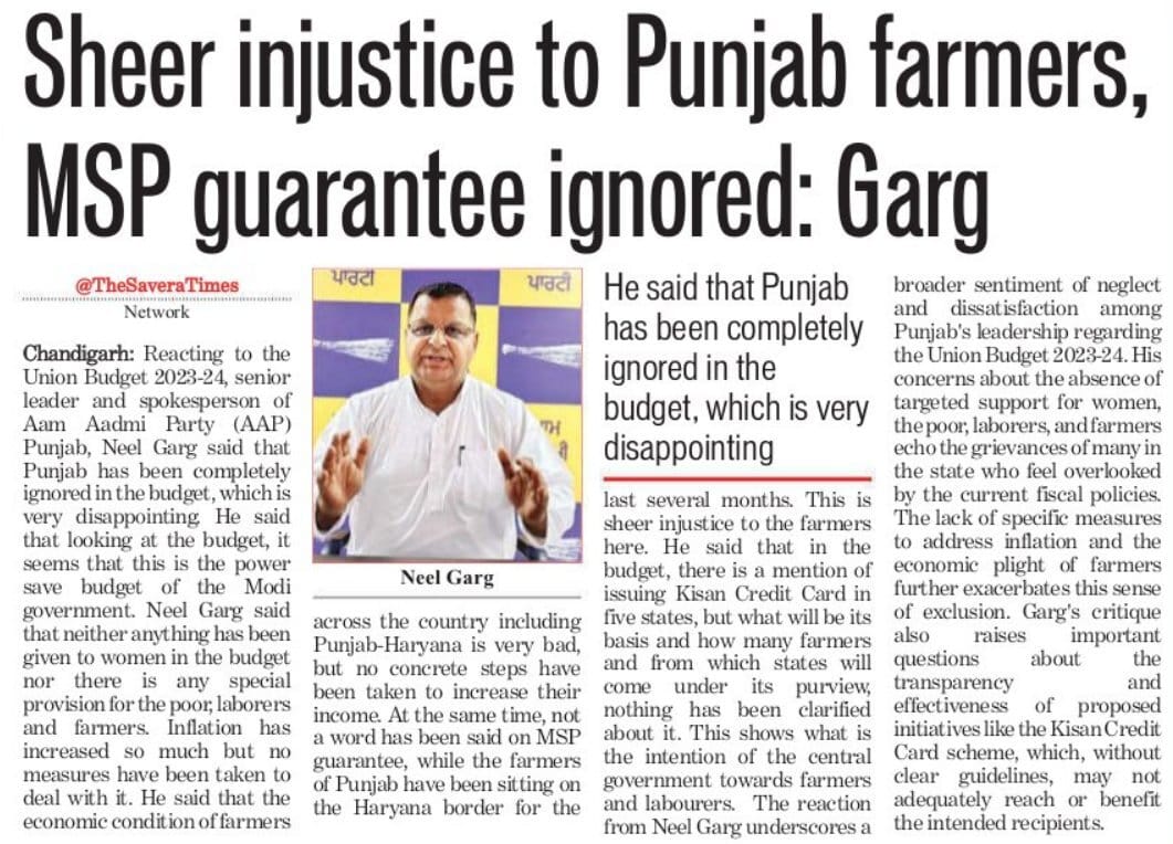 Sheer injustice to Punjab farmers - MSP guarantee ignored - Punjab has been completely ignored in the budget: AAP