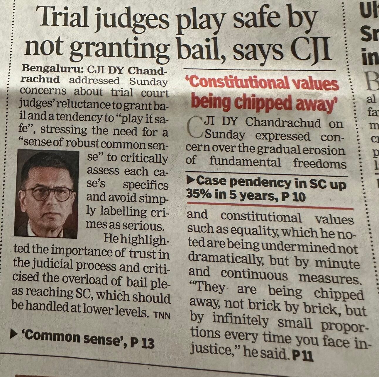 And how is this only applicable to the Trial Court Judges and not to the High Court & Supreme Court judges who today are far more responsible for denying personal liberty? Bail not jail which was the essence of criminal jurisprudence is now only confined to the statute books.