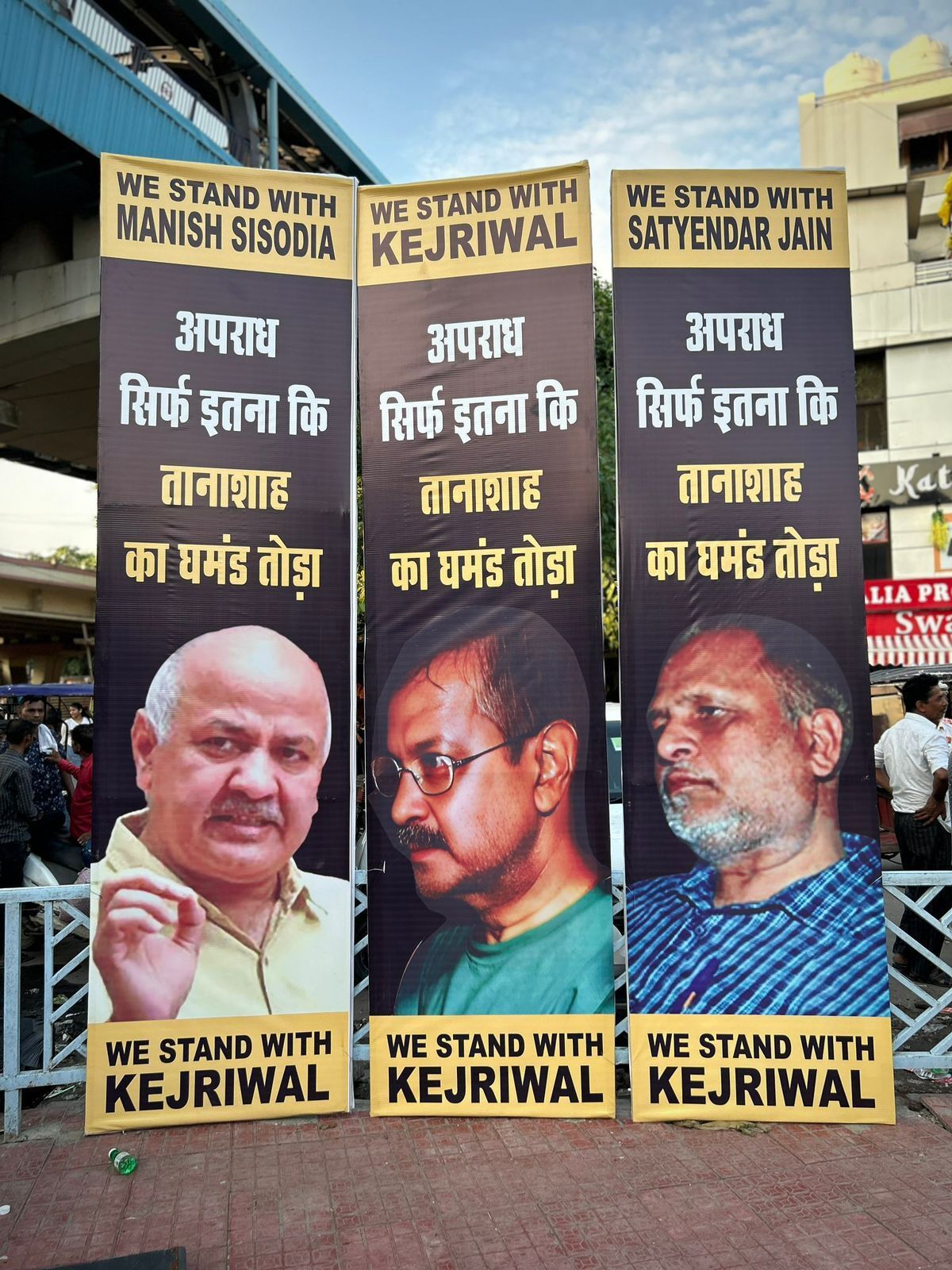 दिल्ली के मुख्यमंत्री अरविंद केजरीवाल जी की गिरफ्तारी के खिलाफ मेट्रो स्टेशन के बाहर हुआ जनता का ज़ोरदार प्रदर्शन।