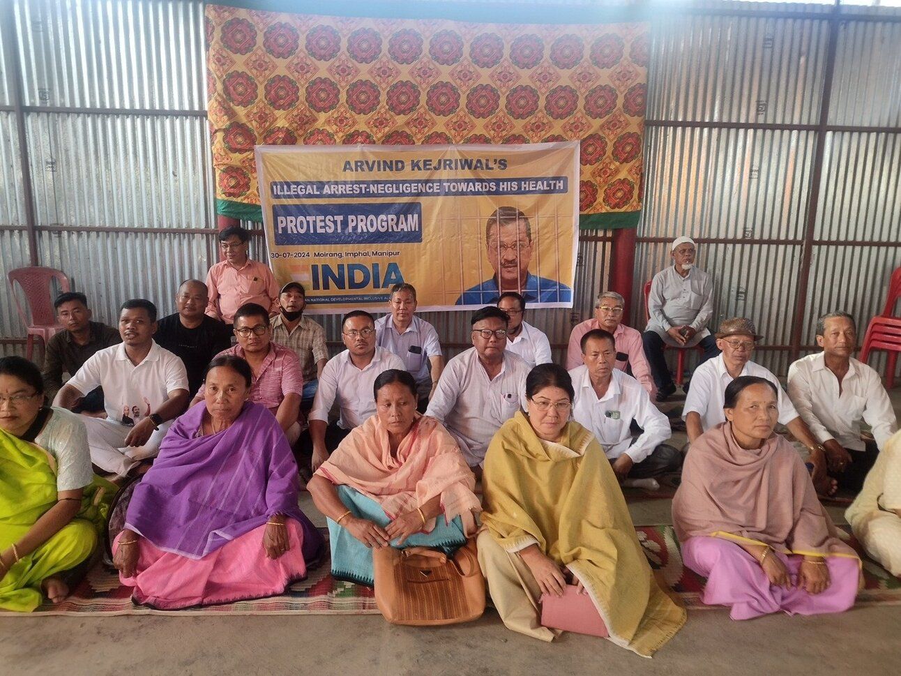 Manipur locals protested against the conspiracy of the Modi Govt. to harm Delhi CM Arvind Kejriwal.