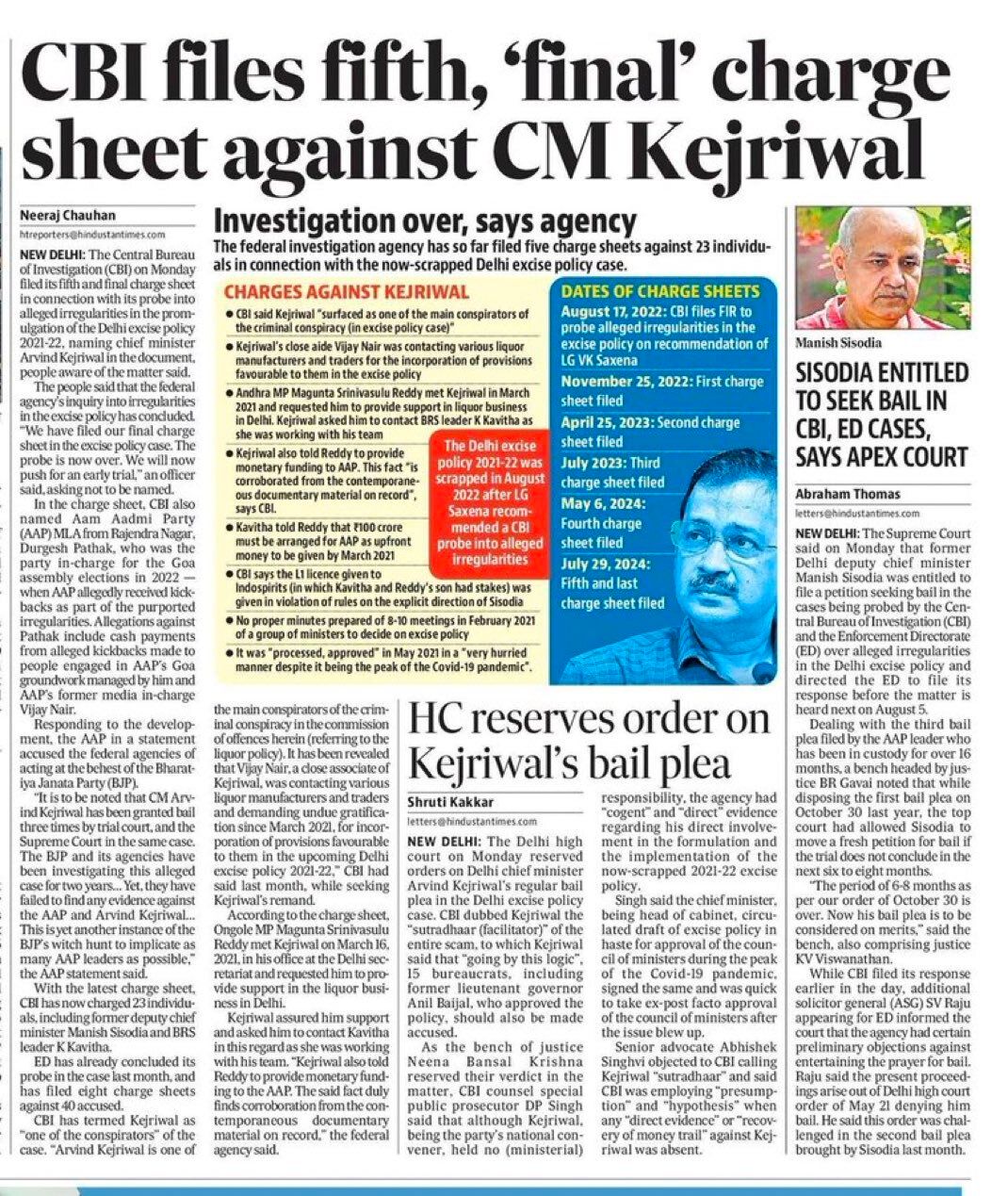 A Delhi court posted for August 12 a matter to decide whether to take cognizance of a charge sheet filed by the CBI against Chief Minister Arvind Kejriwal