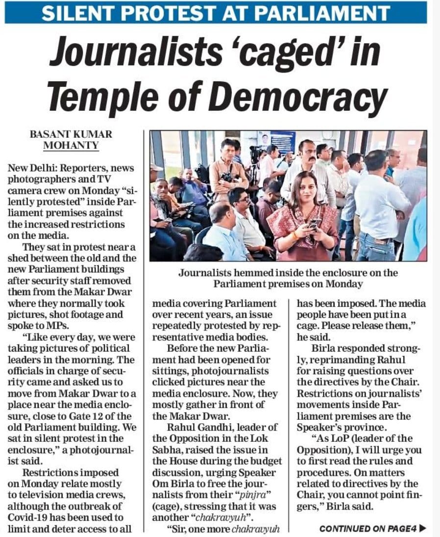 Reporters, news photographers and TV camera crew 'silently protested' inside the Parliament premises against the increased restrictions on the media.