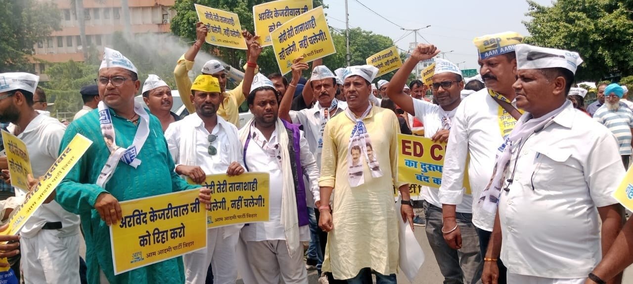 तानाशाह के इस जुल्म के ख़िलाफ़ @AAPBihar के कार्यकर्ताओं ने सड़क पर उतर कर ज़बरदस्त विरोध प्रदर्शन किया।