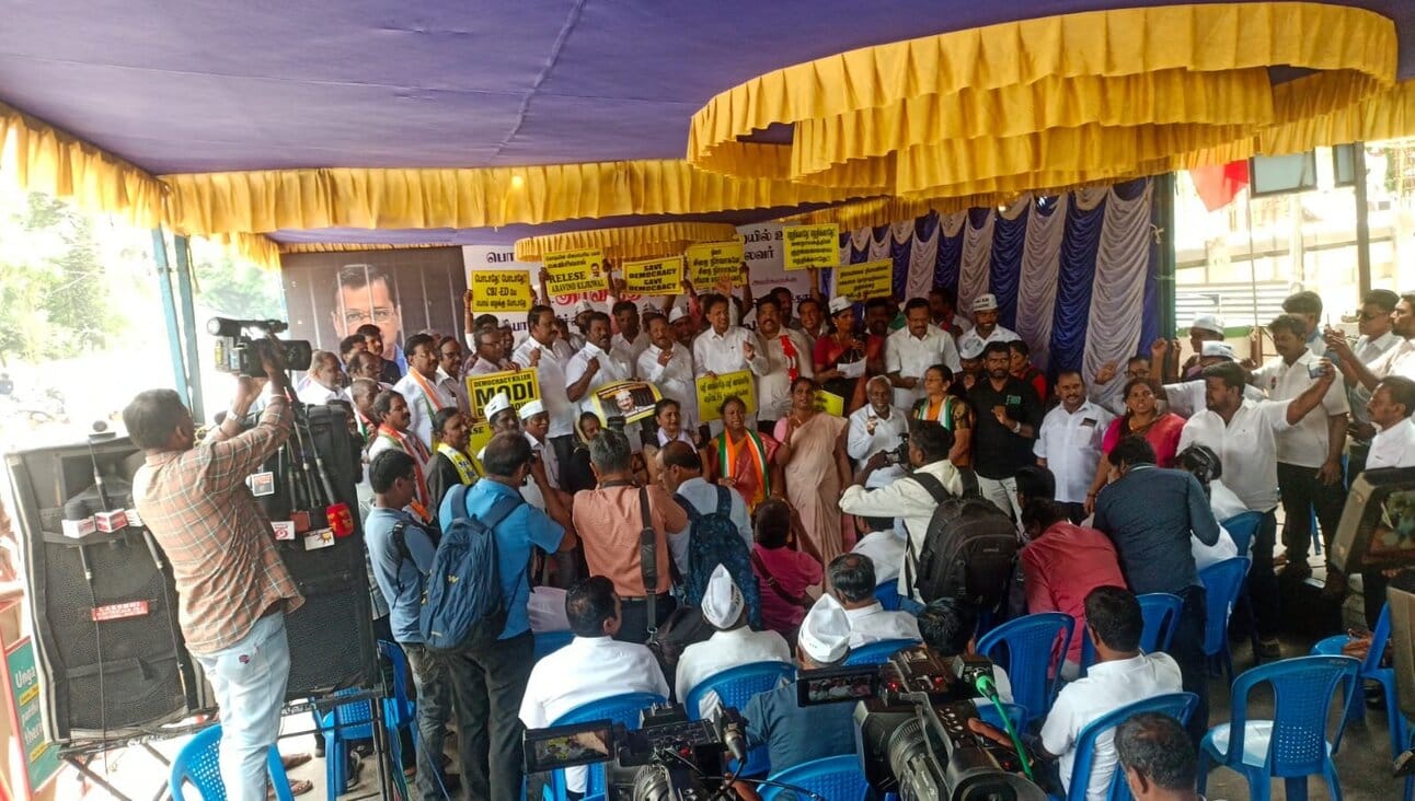 AAP Tamilnadu gathered to condemn the Modi govt’s cruelty in targeting an honest and educated CM Arvind Kejriwal.