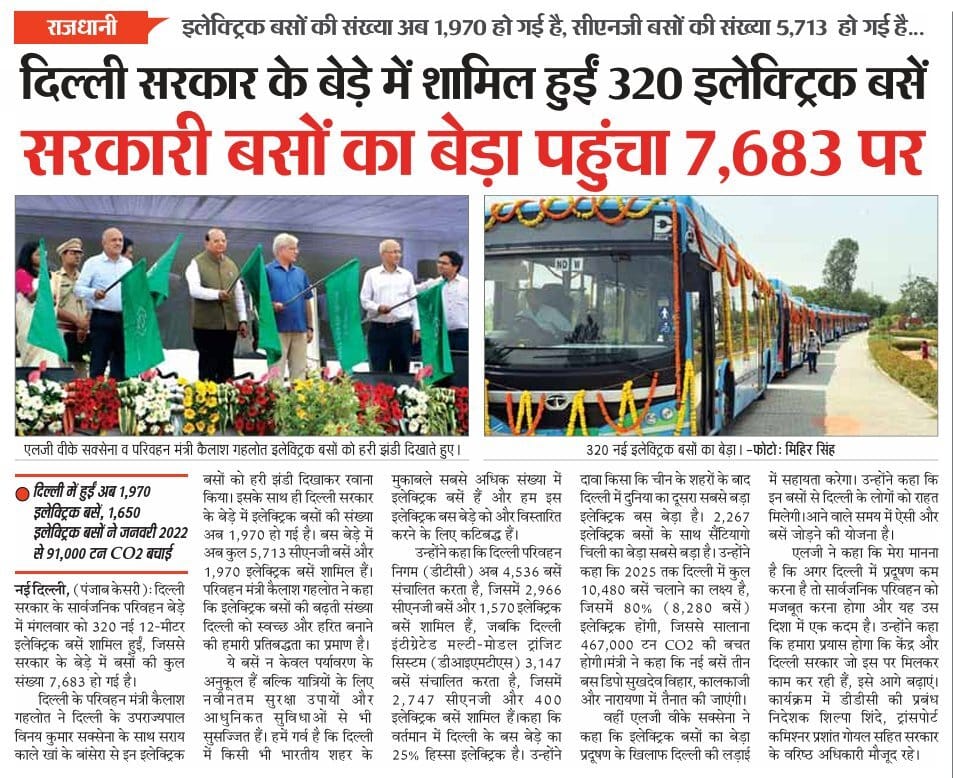 Delhi Lt Governor V K Saxena on Tuesday flagged off 320 electric buses, taking the number of such buses in the city to 1,970.