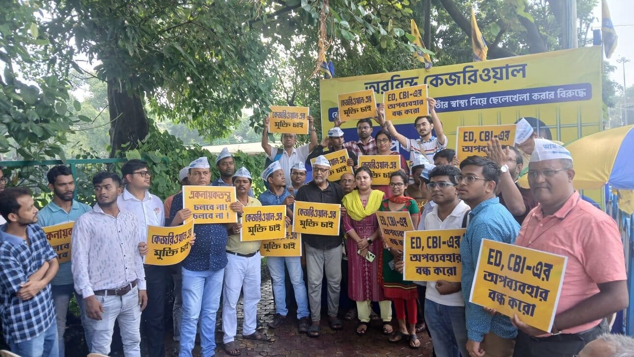 KolKata, West Bengal तानाशाह द्वारा पहले अरविंद केजरीवाल जी को साज़िशन गिरफ़्तार करने और फिर उनके स्वास्थ्य के साथ खिलवाड़ करने के ख़िलाफ़ AAP पश्चिम बंगाल के कार्यकर्ताओं ने विरोध प्रदर्शन किया।
