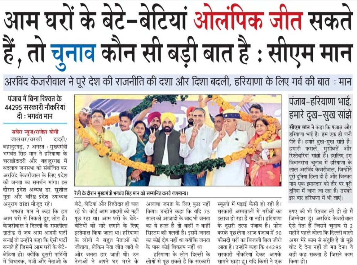 Arvind Kejriwal transformed the state of politics in the entire country, bringing pride to Haryana: Bhagwant Mann.