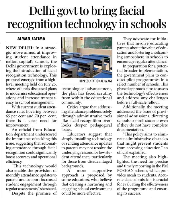 The Delhi government will bring facial recognition technology in schools