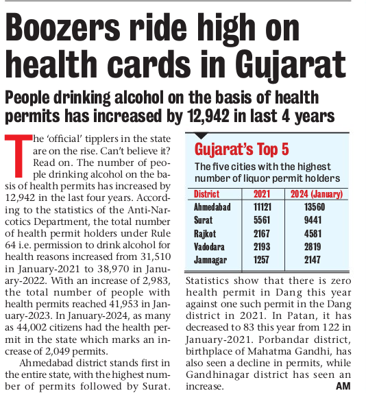 People drinking alcohol based on health permits have increased in Gujarat