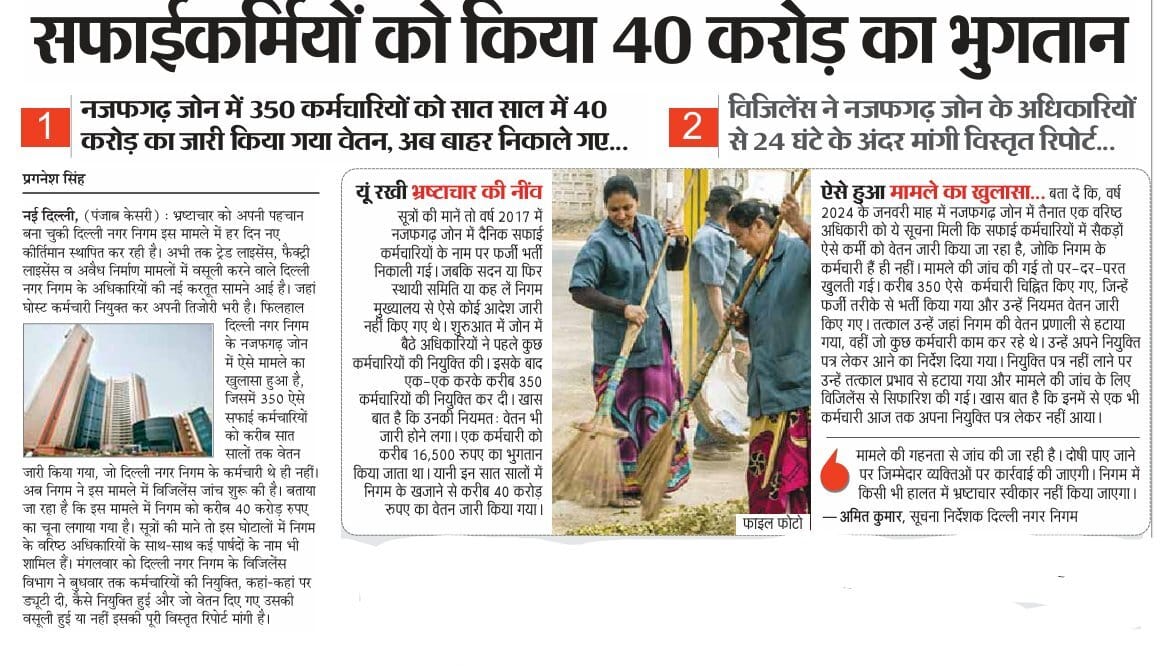 Salary of Rs 40 crores was disbursed to 350 employees in Najafgarh zone in seven years, now they have been thrown out Vigilance sought a detailed report from the officials of Najafgarh zone within 24 hours
