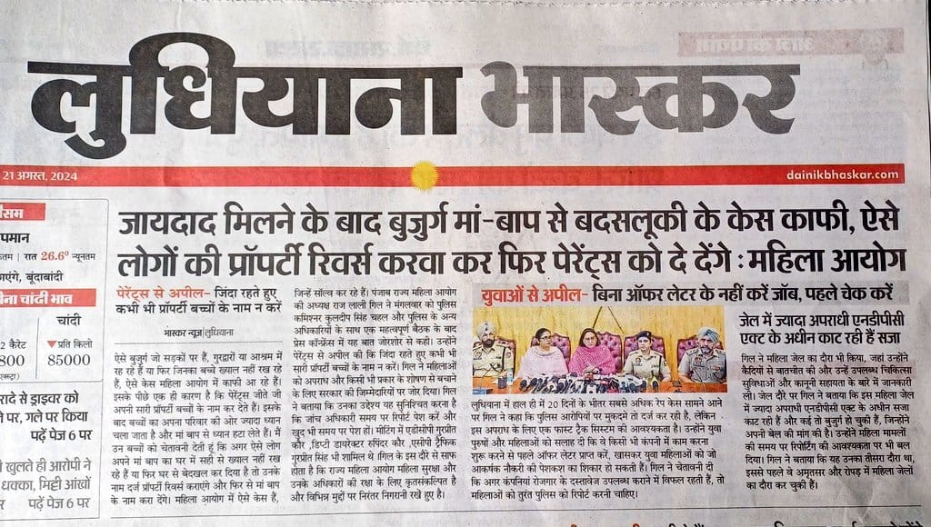 After receiving the property, Punjab Women Commission President Raj Lali Gill told the elderly parents that in case of mistreatment of the parents, the property will be reversed and given back to the parents. She appealed to the parents to never transfer the property in the name of children while they are alive.