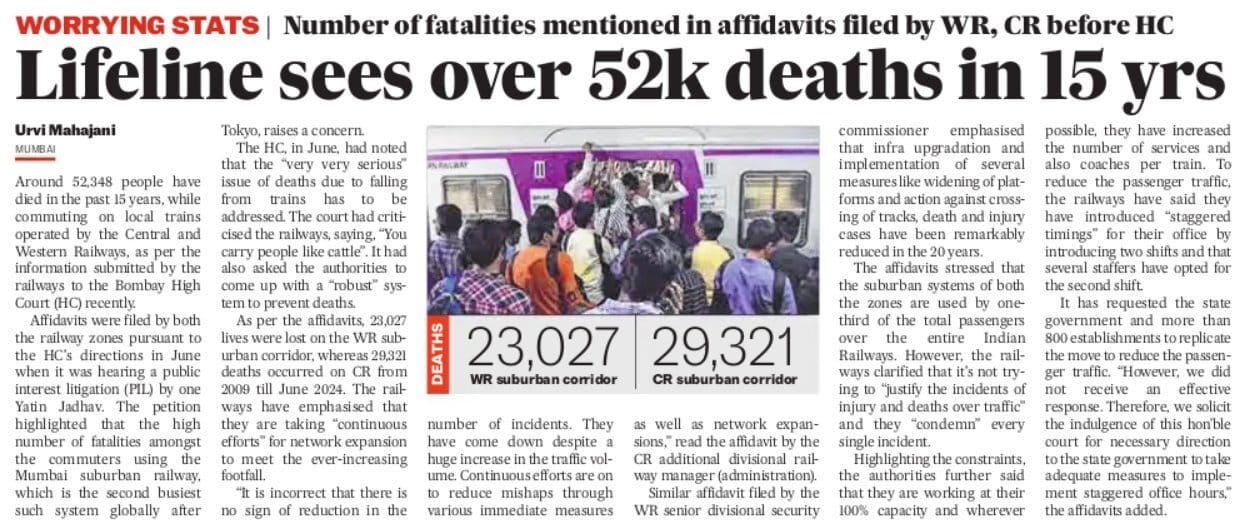 Around 52,348 people have died in the past 15 years, while commuting on local trains operated by the Central and Western Railways, as per information submitted by the railways to the Bombay High Court. #IndianRailways