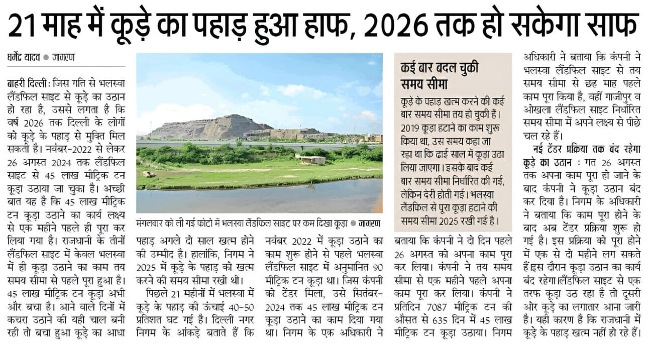 AAP Delhi Government has halved the garbage mountain in just 21 months & it will be cleared by 2026 Garbage is being continuously lifted from Bhalswa landfill site