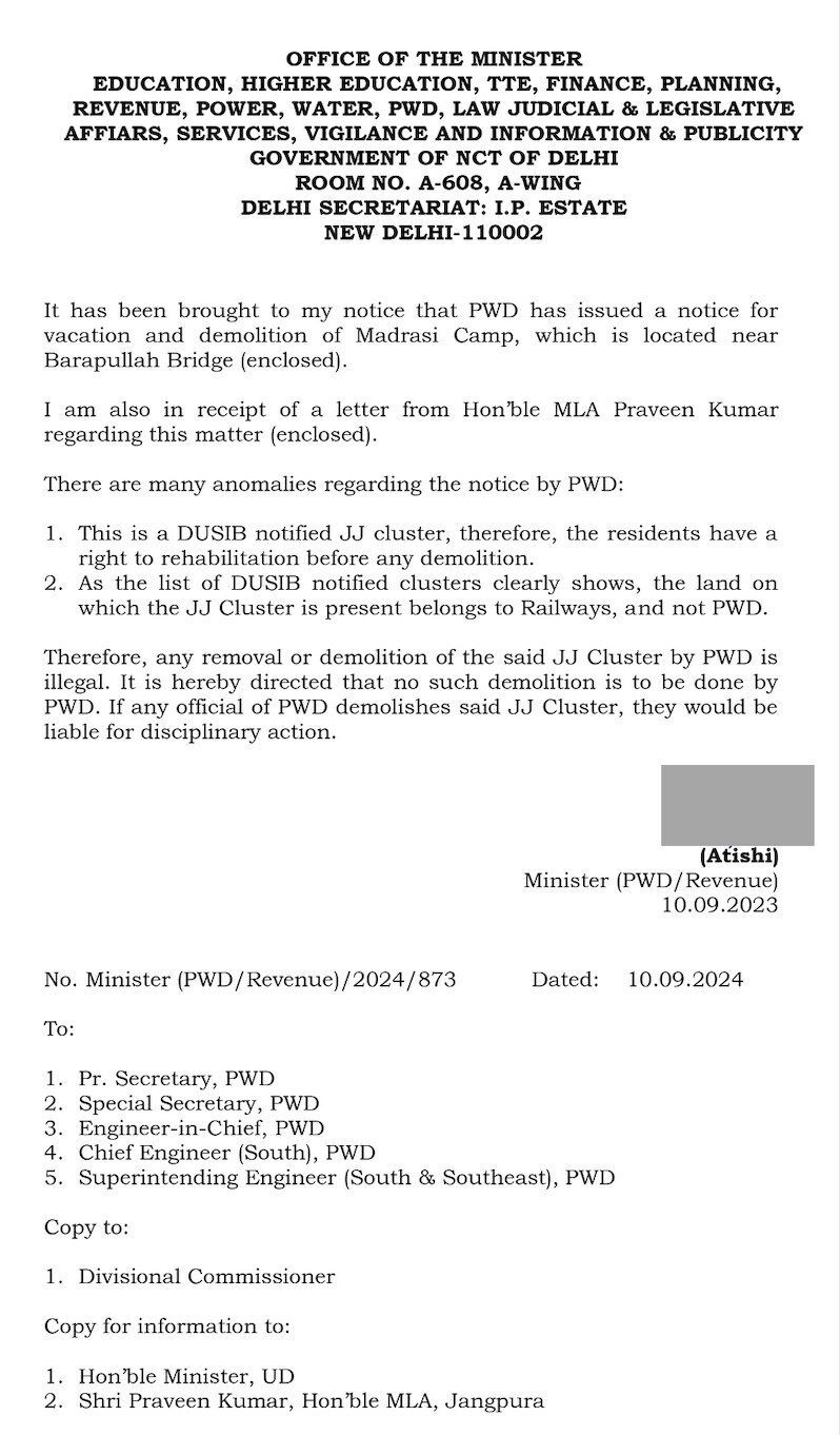 On Madrasi Camp Demolition. Madrasi Camp Is A Listed JJ Cluster No Demolition Should Be Conducted.