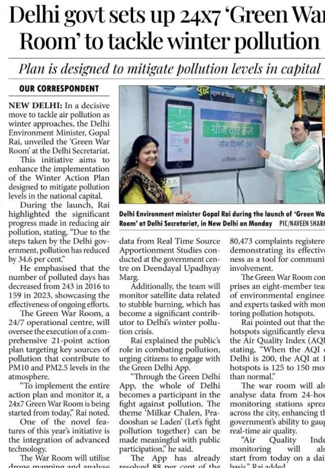 The Delhi Govt sets up 24x7 War Room to tackle the winter pollution