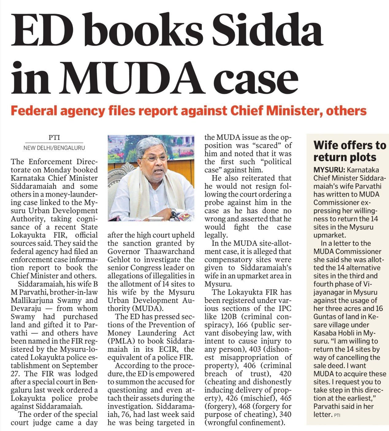 "I am willing to return the 14 sites by way of cancelling the sale deed. I want MUDA to acquire these sites. I request you to take step in this direction at the earliest.": Karnataka CM's Wife