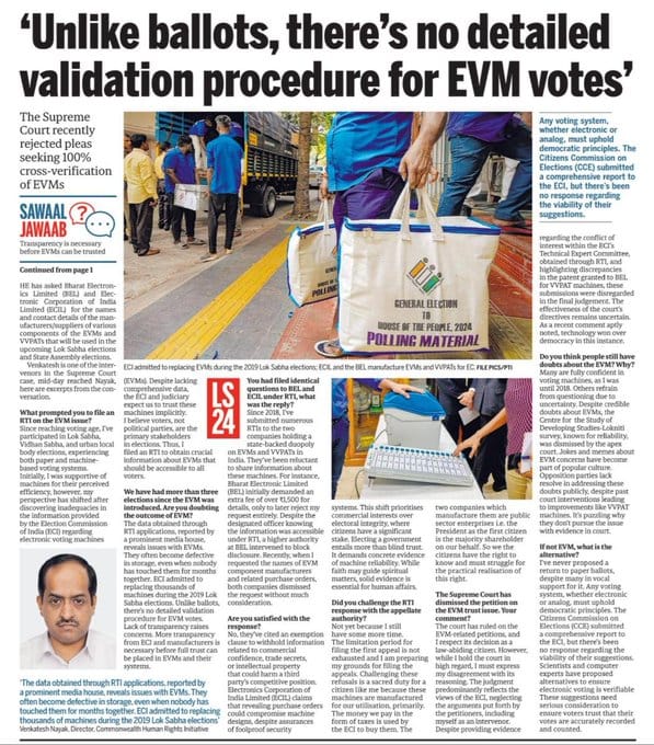 The process itself is flawed and doesn't generate confidence. What's a democracy where people don't trust the voting process? Venkatesh Nayak has been at the forefront of it, and his RTIs about more information on the process and machines have regularly been denied.