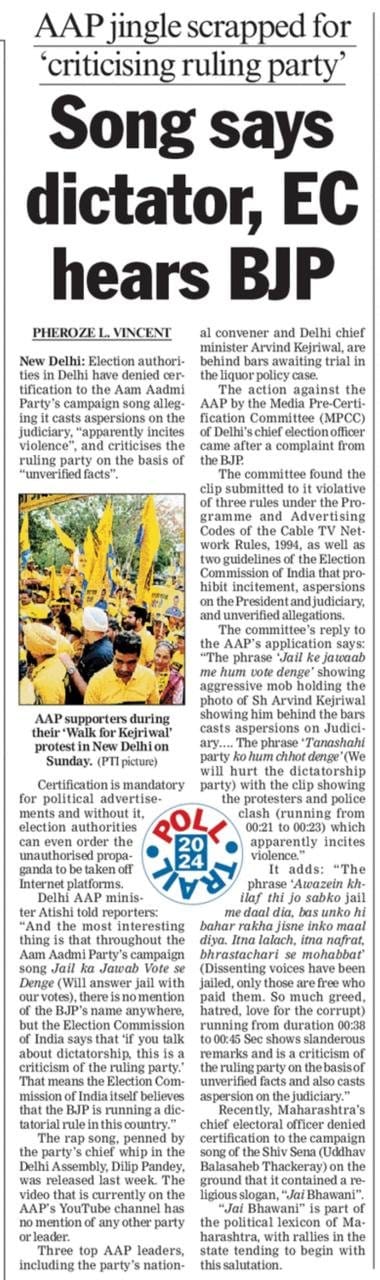 This is funny, if true. The song doesn't mention BJP but the ECI says ruling party criticised on the basis of "unverified facts".