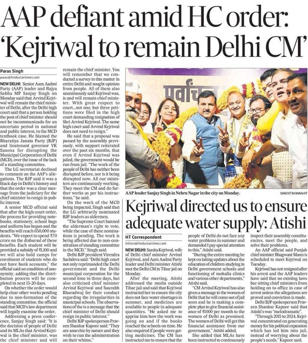 The Bharatiya Janata Party and lieutenant governor VK Saxena are responsible for disrupting the Municipal Corporation of Delhi, over the issue of the lack of a standing committee: Sanjay Singh