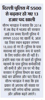 Vacancies in Delhi Police increased from 5500 (in 2014) to 13000!