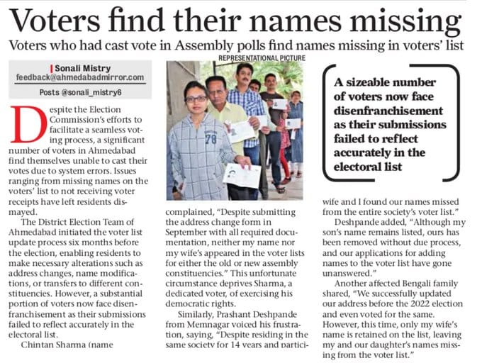 Gujarat: Voters who had cast vote in assembly polls find names mission in voters' list.