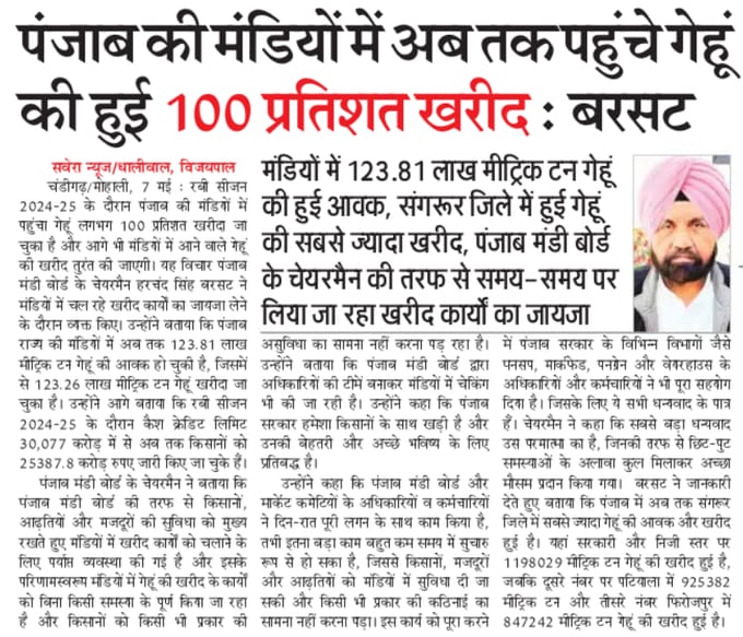 https://x.com/Benarasiyaa/status/1787783573044662361100 percent procurement of wheat has so far reached the markets of Punjab: Barsat